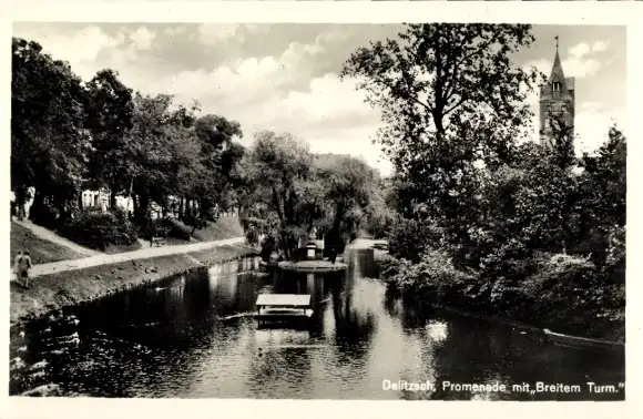 Ak Delitzsch in Sachsen, Promenade, Breiter Turm