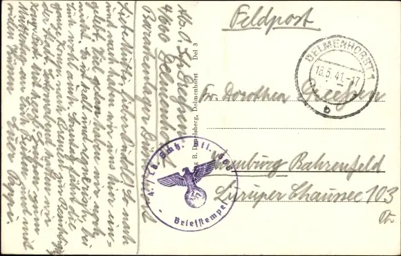 Zustand, siehe Scan, gelaufen, 1941 - ca 14 cm X 9 cm