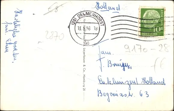 Zustand, siehe Scan, gelaufen, 1956 - ca 9 cm X 14 cm