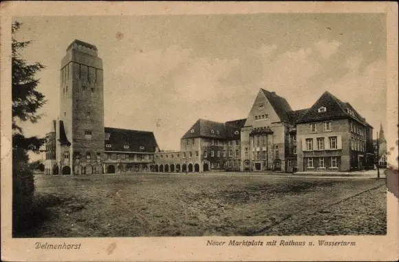 Ak Delmenhorst in Oldenburg, Neuer Marktplatz, Rathaus, Wasserturm