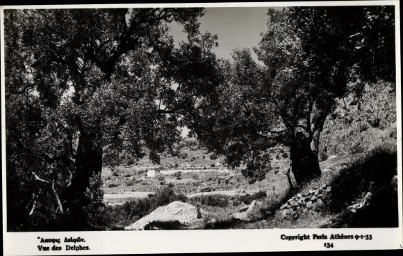 Ak Delphi Griechenland, Durchblick, Landschaftsblick