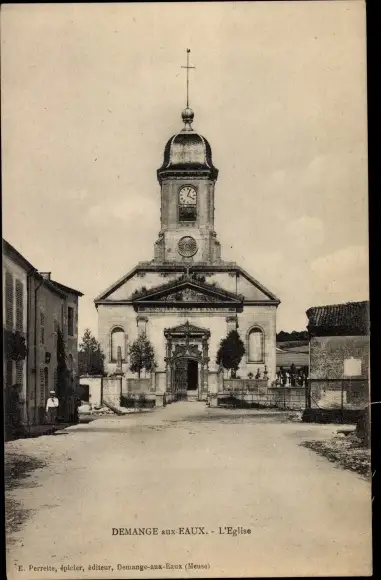 Ak Demange aux Eaux Meuse, L Eglise, Kirche, Straßenansicht