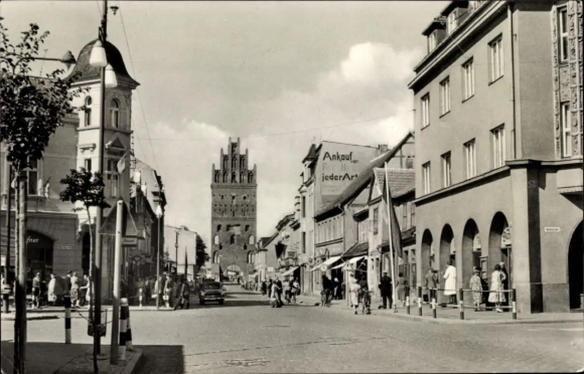 Ak Demmin in Vorpommern, Clara Zetkin Straße mit Blick auf Luisentor