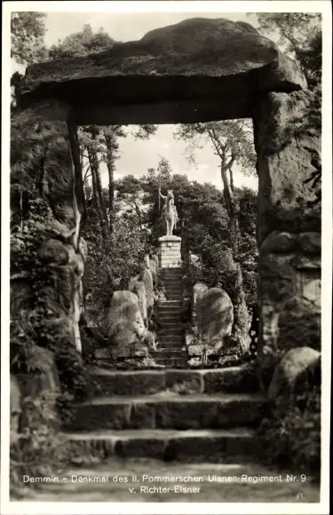 Ak Demmin in Vorpommern, Denkmal des II. Pommerschen Ulanen-Regiment Nr. 9 von Richter-Elsner