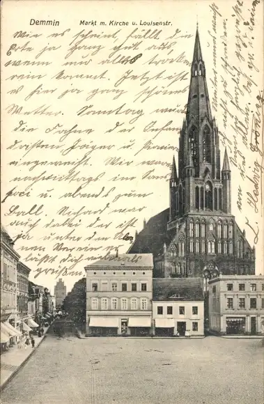 Ak Demmin in Vorpommern, Markt, Kirche, Louisenstraße