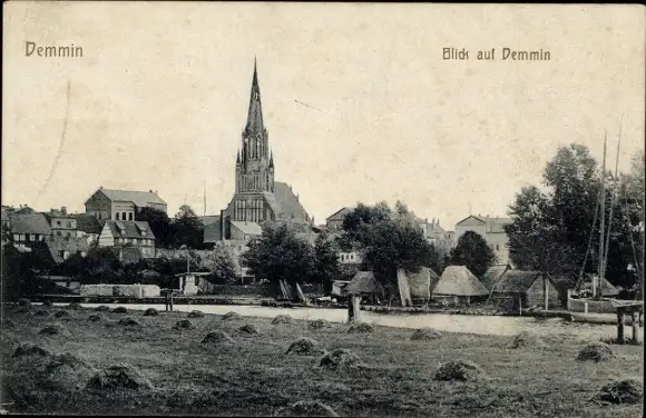 Ak Demmin in Vorpommern, Teilansicht, Kirche