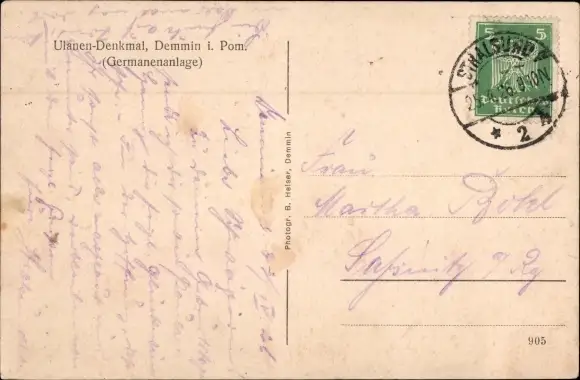 Ak Demmin in Vorpommern, Ulanen Denkmal, Germanenanlage