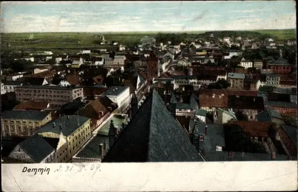 Ak Demmin in Vorpommern, Vogelschau auf die Stadt
