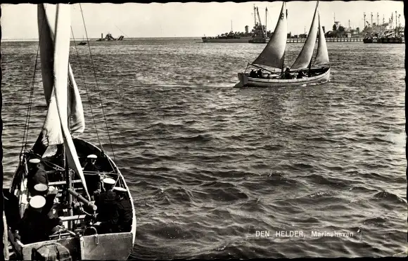 Ak Den Helder, Kriegshafen, Kriegsschiff, Segelboot