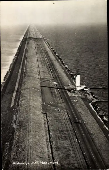 Ak Den Oever Wieringen Nordholland Niederlande, Afsluitdijk met Monument