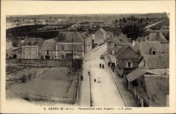 Ak Denée Maine et Loire, L'Eglise, Perspective vers Angers