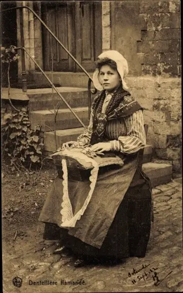 Ak Dentelliere Flamande, Spitzenklöpplerin in belgischer Tracht