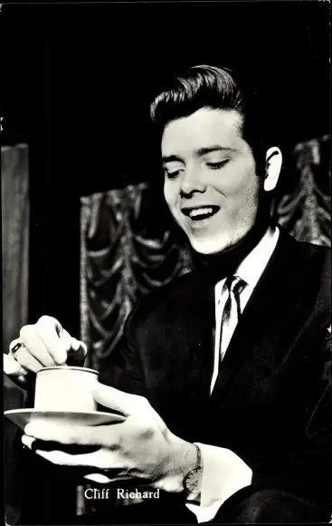 Ak Der Sänger Cliff Richard mit Tasse