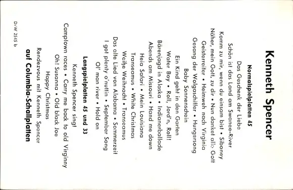 Ak Der Sänger Kenneth Spencer, September Song, Autogramm