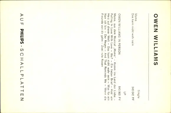 Ak Der Sänger Owen Williams, Das kann nicht wahr sein.., Autogramm