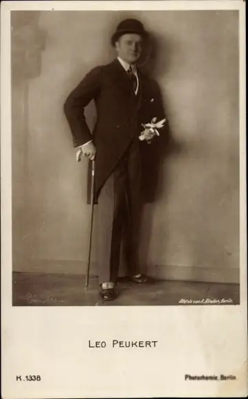 Ak Der Schauspieler Leo Peukert, Portrait, Stock, Hut, Handschuhe
