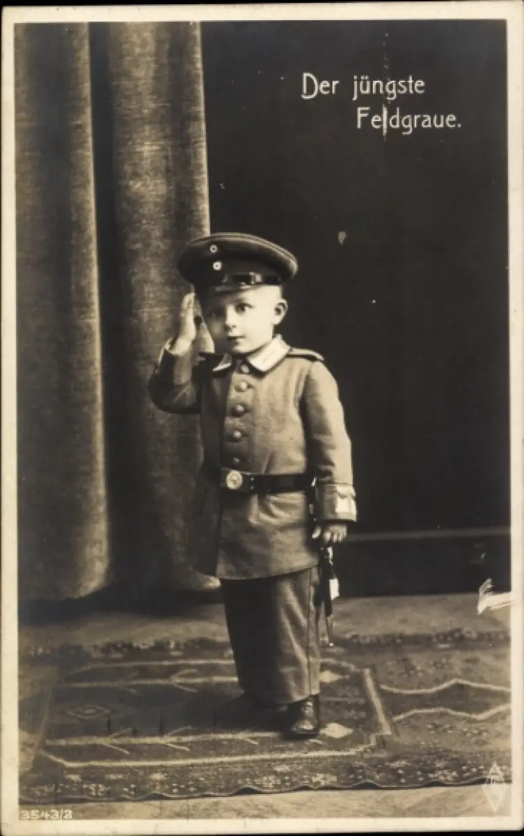 Ak Der jüngste Feldgraue, kleiner Junge in Uniform