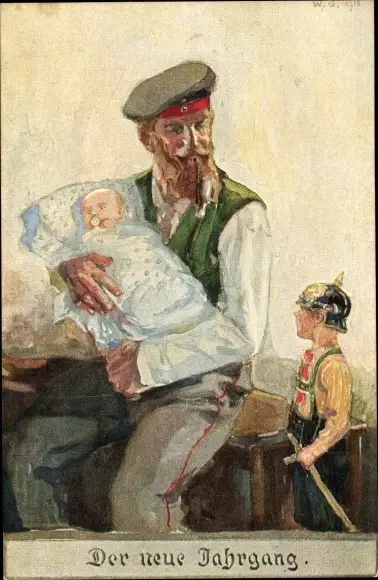 Ak Der neue Jahrgang, deutscher Soldat in Uniform mit Baby, Sohn in Uniform
