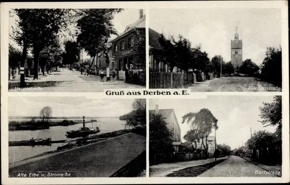 Ak Derben an der Elbe, Kirchenstraße, Stromelbe, Hauptstraße, Dorfstraße
