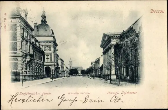 Ak Dessau in Sachsen Anhalt, Kavalierstraße, Herzogl. Hoftheater, Erbprinzliches Palais
