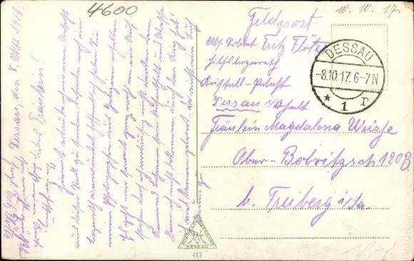 Zustand, siehe Scan, gelaufen, 1917 - ca 14 cm X 9 cm