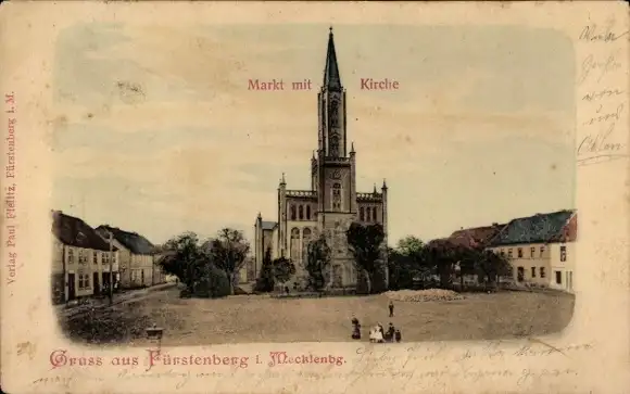 Ansichtskarte, Postkarte, Kirche, Stadtkirche, Gotteshaus, Sakralbau, Kirche