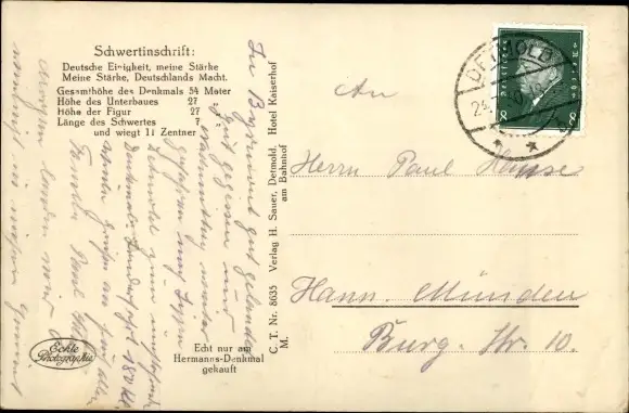 Ak Detmold am Teutoburger Wald, Hermannsdenkmal