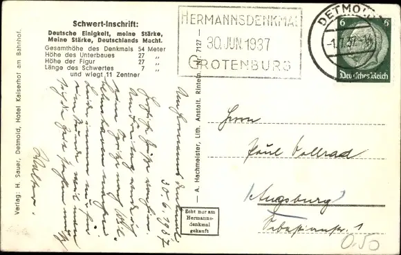 Zustand, siehe Scan, gelaufen, 1937 - ca 9 cm X 14 cm