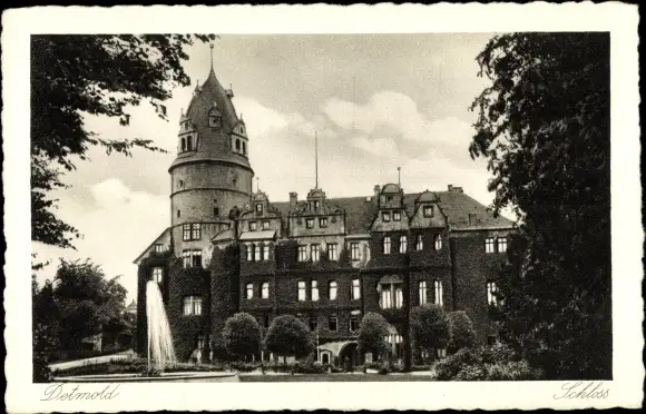 Ak Detmold in Nordrhein Westfalen, Schloss, Springbrunnen