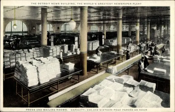 Ak Detroit Michigan USA, Detroit News Building, Presse- und Posträume