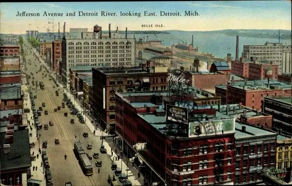Ak Detroit Michigan USA, Jefferson Avenue, Detroit River