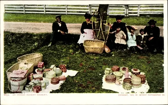 Ak Detroit Michigan USA, indischer Korbmarkt