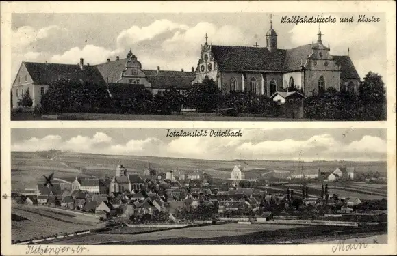 Ak Dettelbach am Main Unterfranken, Wallfahrtskirche, Kloster, Gesamtansicht
