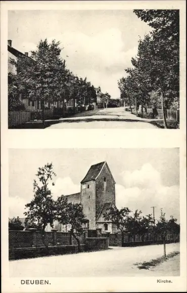 Ak Deuben Bennewitz Sachsen, Kirche, Ortspartie