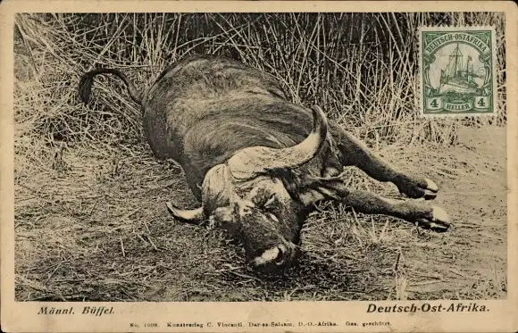 Ak Deutsch Ostafrika Tansania, Büffel, Jagdbeute, Jagd