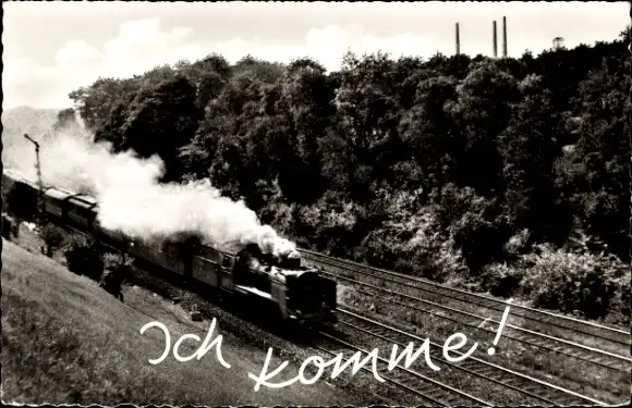 Ak Deutsche Eisenbahn, Dampflok, Bahnschienen, Ich komme