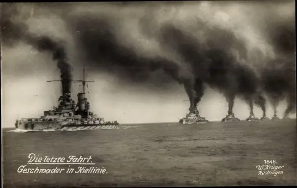Ak Deutsche Kriegsschiffe, Die letzte Fahrt, Geschwader in Kiellinie