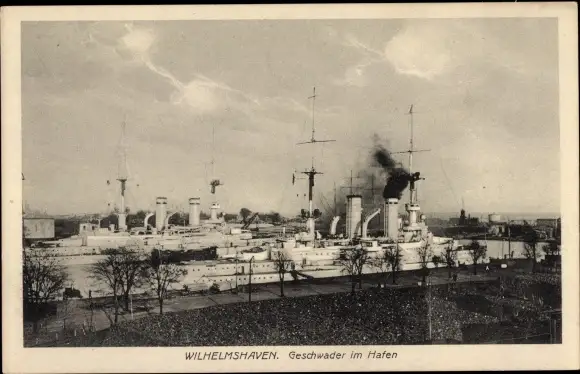 Ak Deutsche Kriegsschiffe, Geschwader im Hafen Wilhelmshaven, Linienschiffe, Kaiserliche Marine