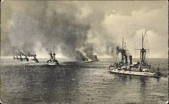 Ak Deutsche Kriegsschiffe, Geschwader in Kiellinie mit begleitender Torpedobootsdivision