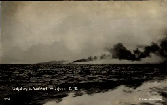 Ak Deutsche Kriegsschiffe, Königsberg und Frankfurt im Gefecht, I WK