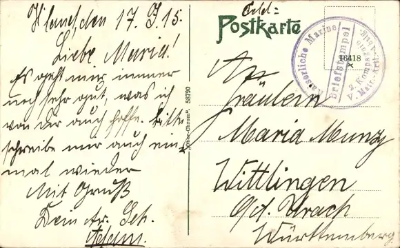Zustand, siehe Scan, gelaufen, 1915 - ca 14 cm X 9 cm