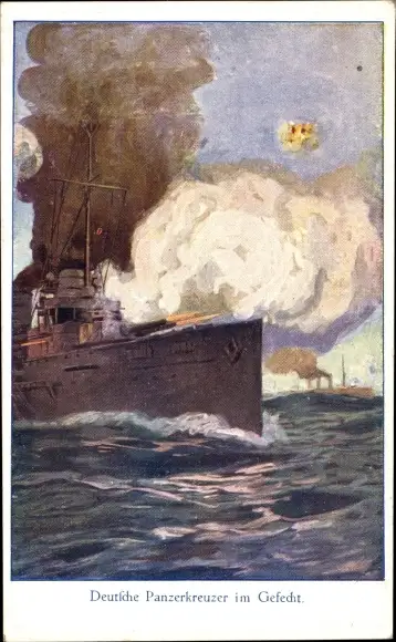 Ak Deutsche Kriegsschiffe, Panzerkreuzer im Gefecht, Kaiserliche Marine, I. WK