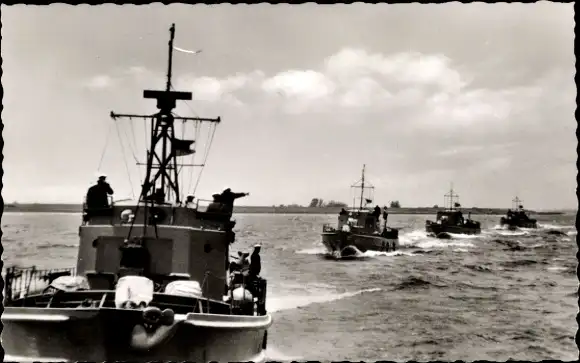 Ak Deutsche Kriegsschiffe, Räumboote im Manöver