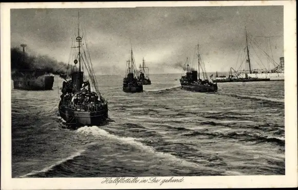 Ak Deutsche Kriegsschiffe, SMS Halbflotille in See gehend