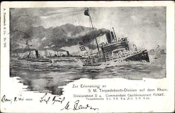 Ak Deutsche Kriegsschiffe, Torpedoboots Division auf dem Rhein, Capitänleutnant Funke