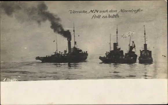 Ak Deutsche Kriegsschiffe, Versuche, M24 nach dem Minentreffer flott zu halten
