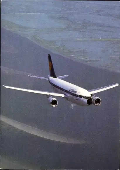 Ak Deutsche Lufthansa, Passagierflugzeug im Flug über dem Meer