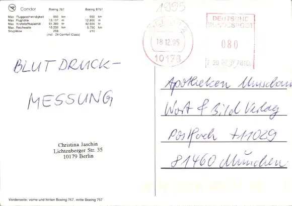 Ak Deutsche Passagierflugzeuge Condor, Boeing 767, Boeing 757