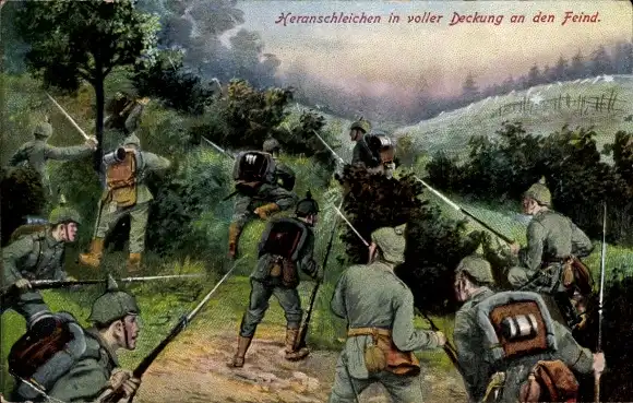 Ak Deutsche Soldaten, Heranschleichen in voller Deckung an den Feind
