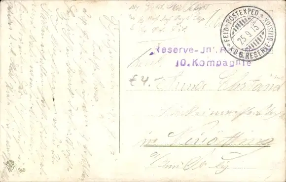 Zustand, siehe Scan, gelaufen, 1915 - ca 14 cm X 9 cm